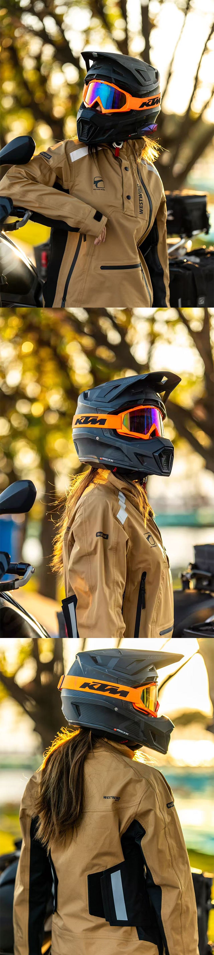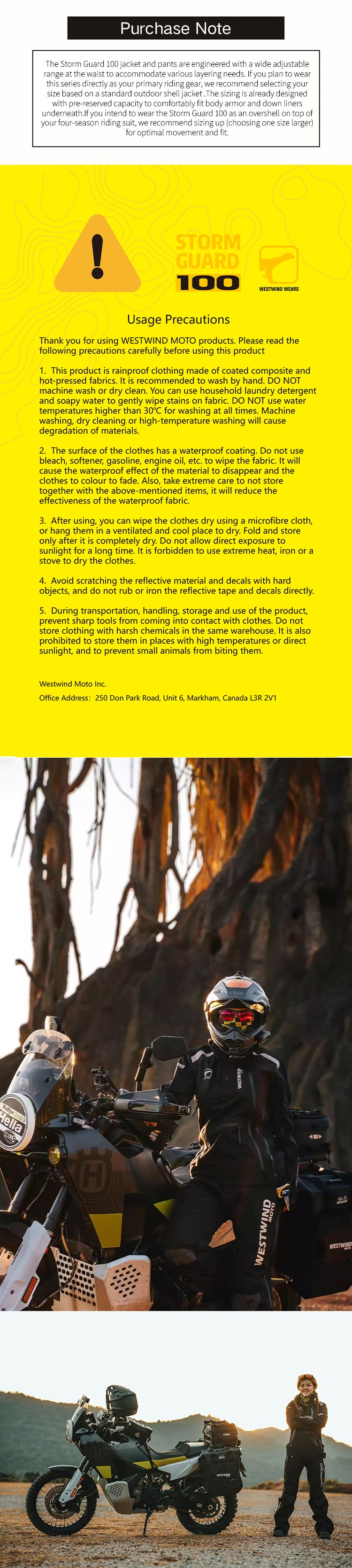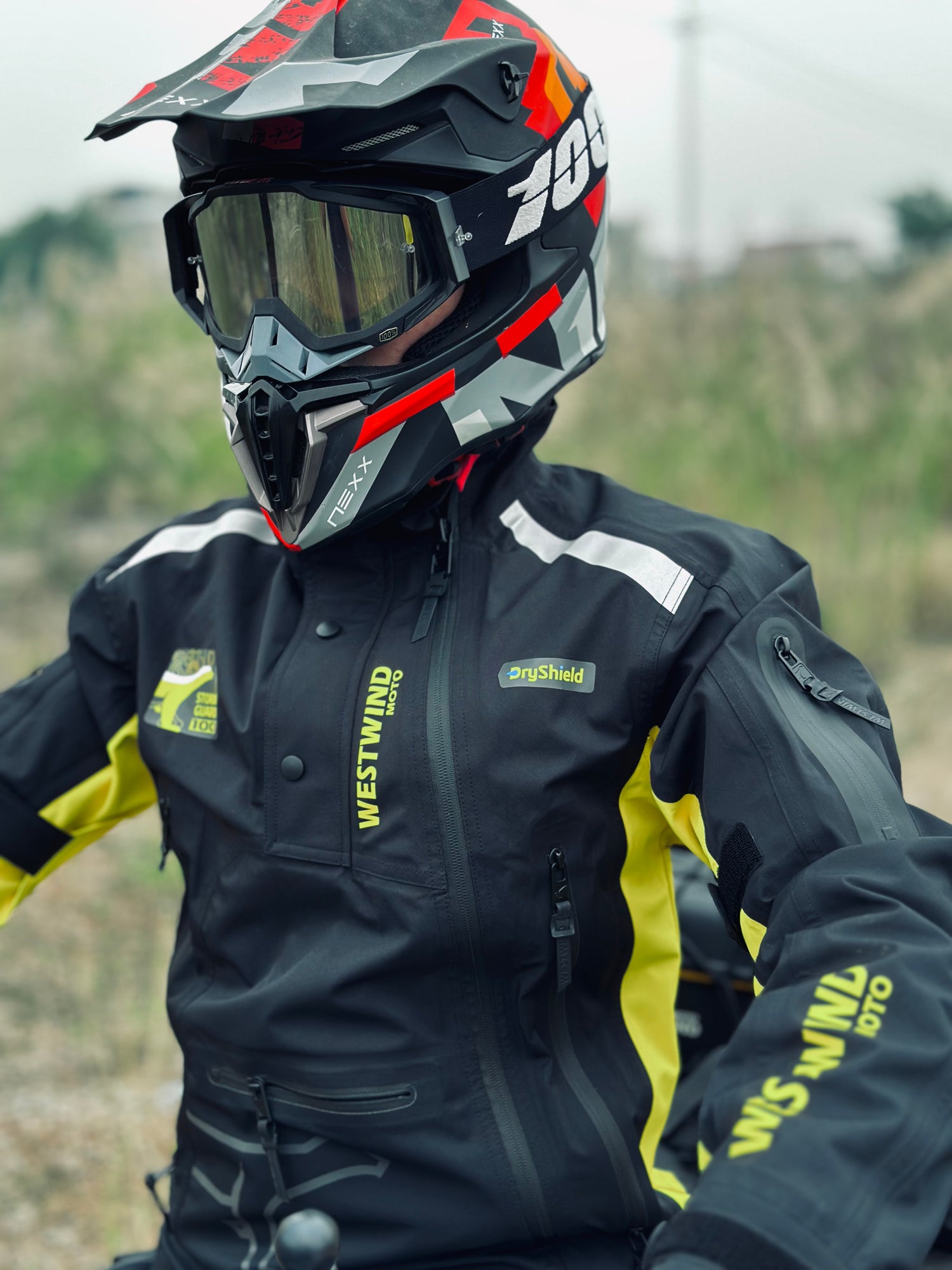 The STORM GUARD100 uses DryShield high-tech fabric and employs a special lamination technology that combines a multi-layer membrane material, which is waterproof yet breathable, with a high-performance textile base. One of the key features of this fabric is its excellent waterproof performance, specifically designed for rainy-day riding. The nanometer-scale microporous membrane structure effectively prevents water from entering, while allowing sweat to evaporate and be expelled, keeping the body dry and comfortable.