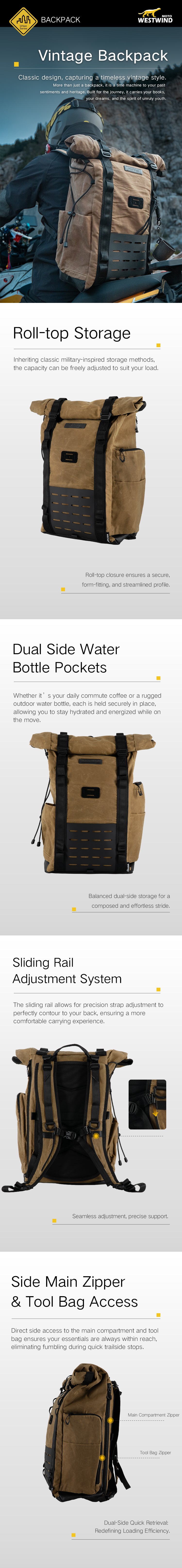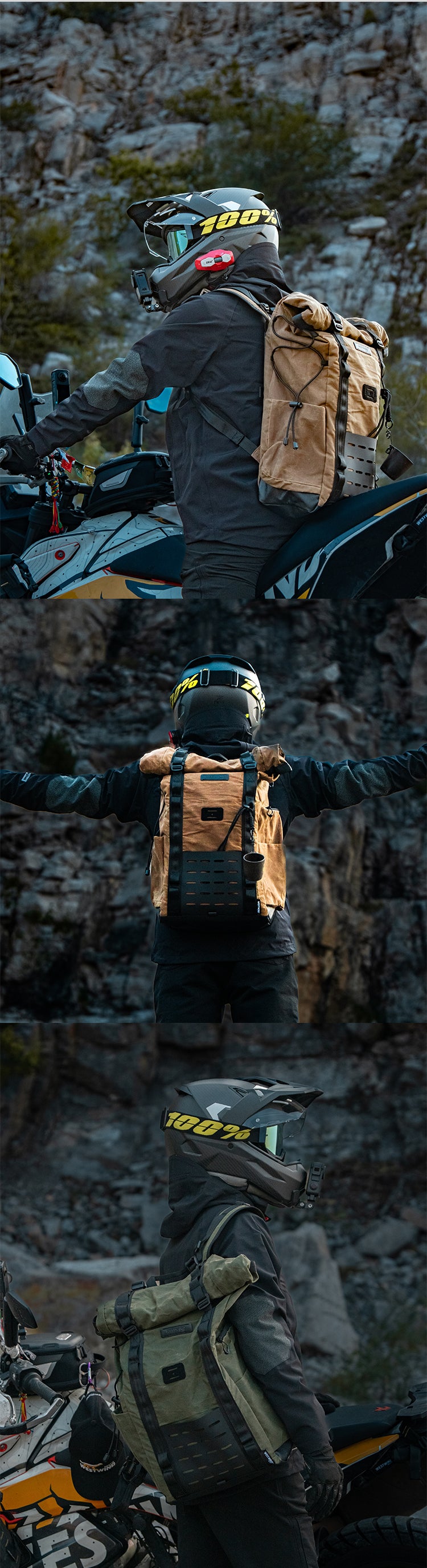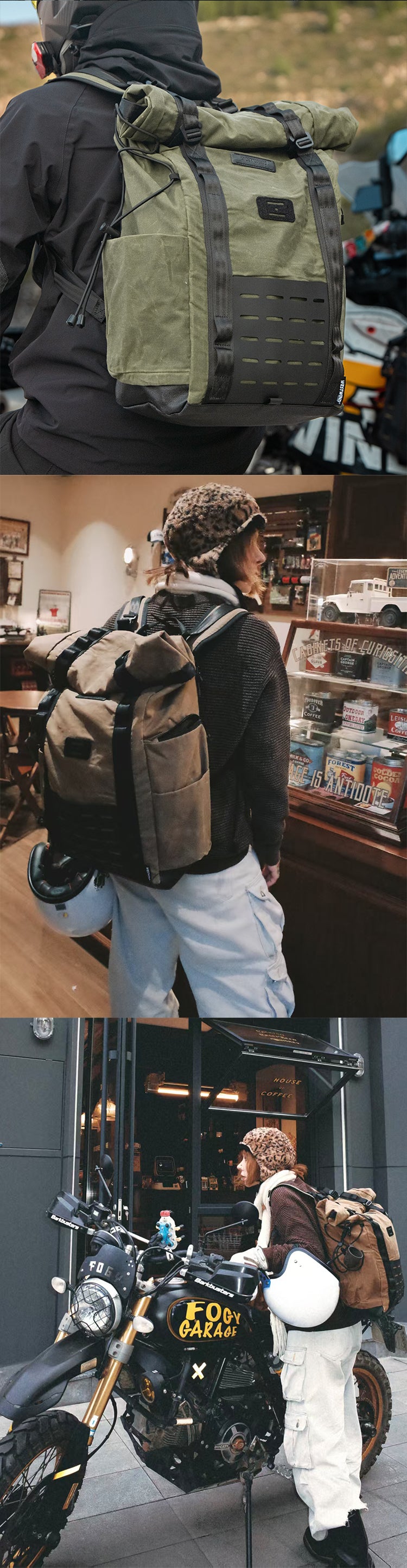 The Nomad Series Vintage Backpack combines timeless heritage style with the rugged functionality required for modern motorcycle adventure.